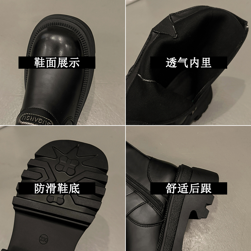 黑色增高靴子女时尚 新款 休闲皮面短靴 2025秋季 环球厚底马丁靴女款