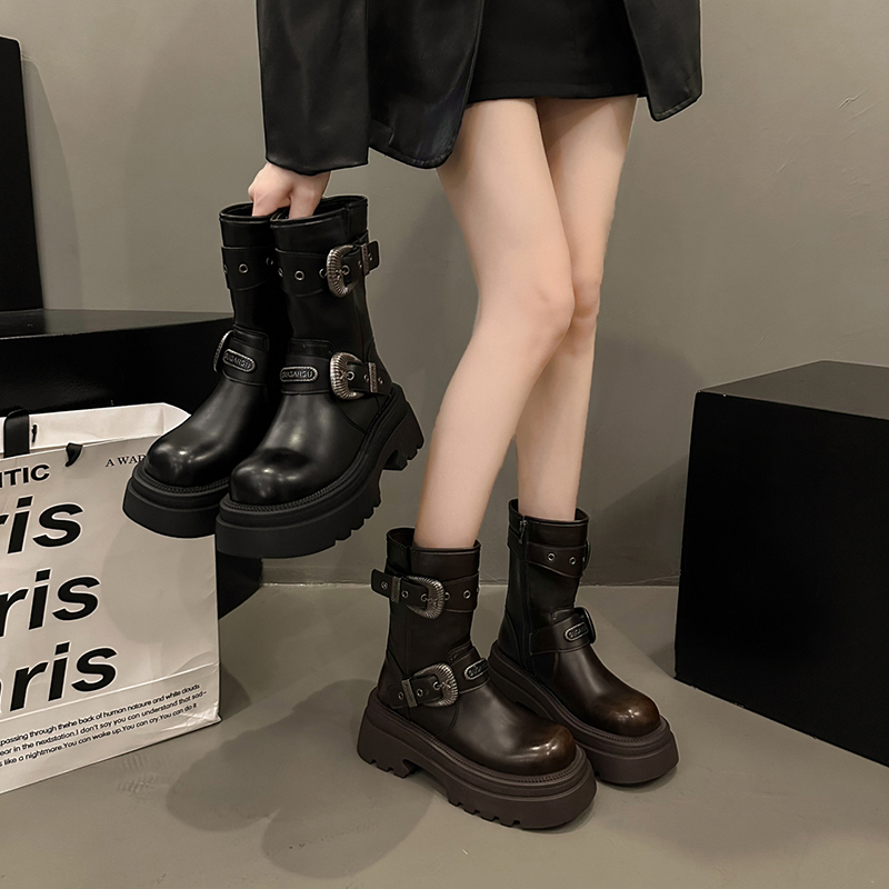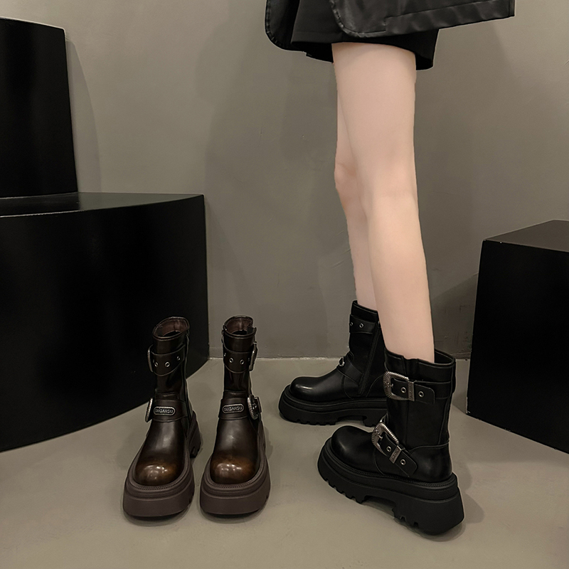 超火厚底棕色裤 秋季 管靴骑士马丁靴 2025年新款 环球美拉德短靴女款