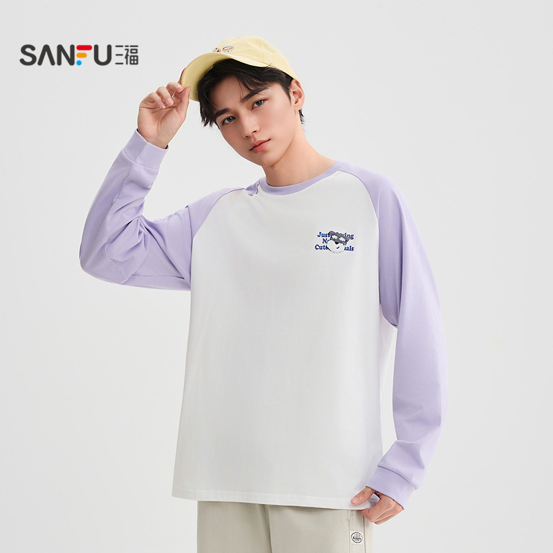宽松圆领打底衫 t恤男萌趣小狗插肩袖 506407 长袖 三福2025秋冬新款