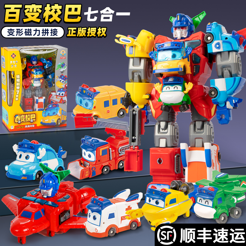 百变校巴歌德七合一校车变形汽车磁吸合体套装 机器人 儿童玩具拼装