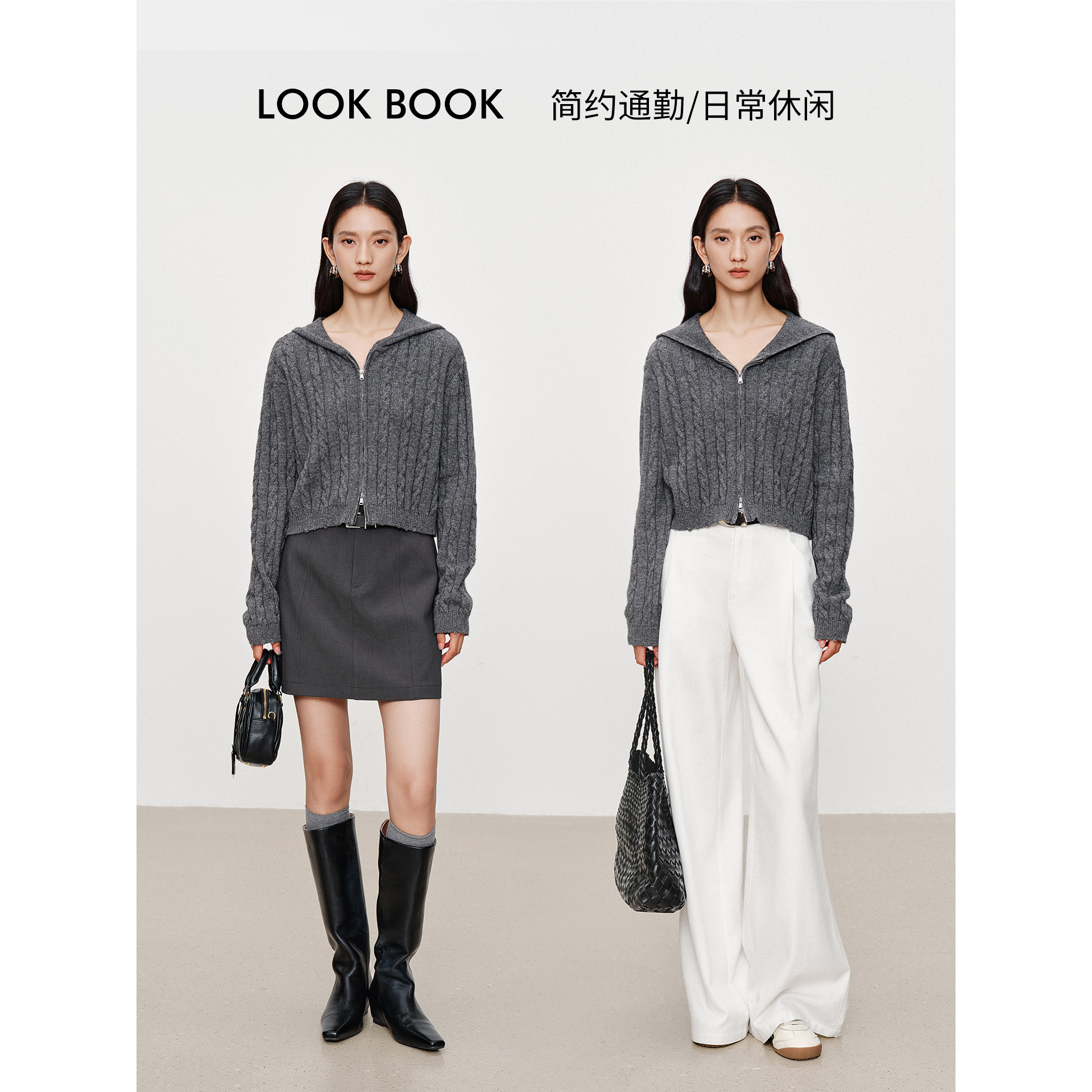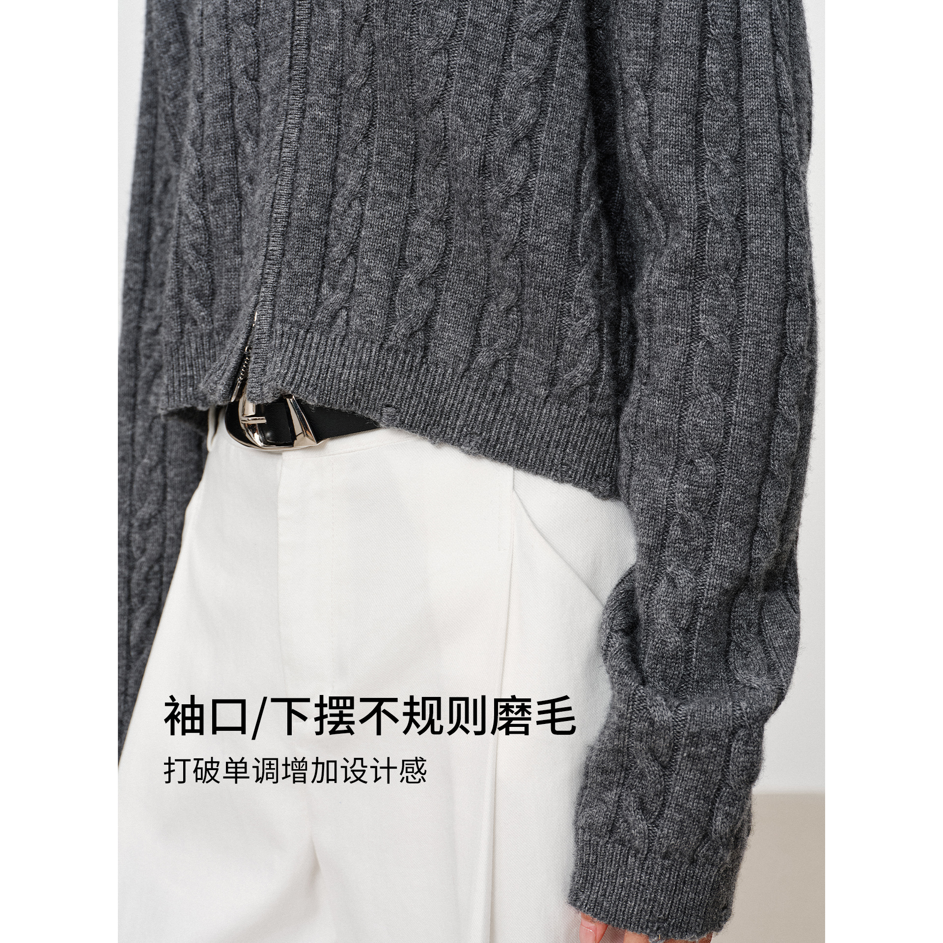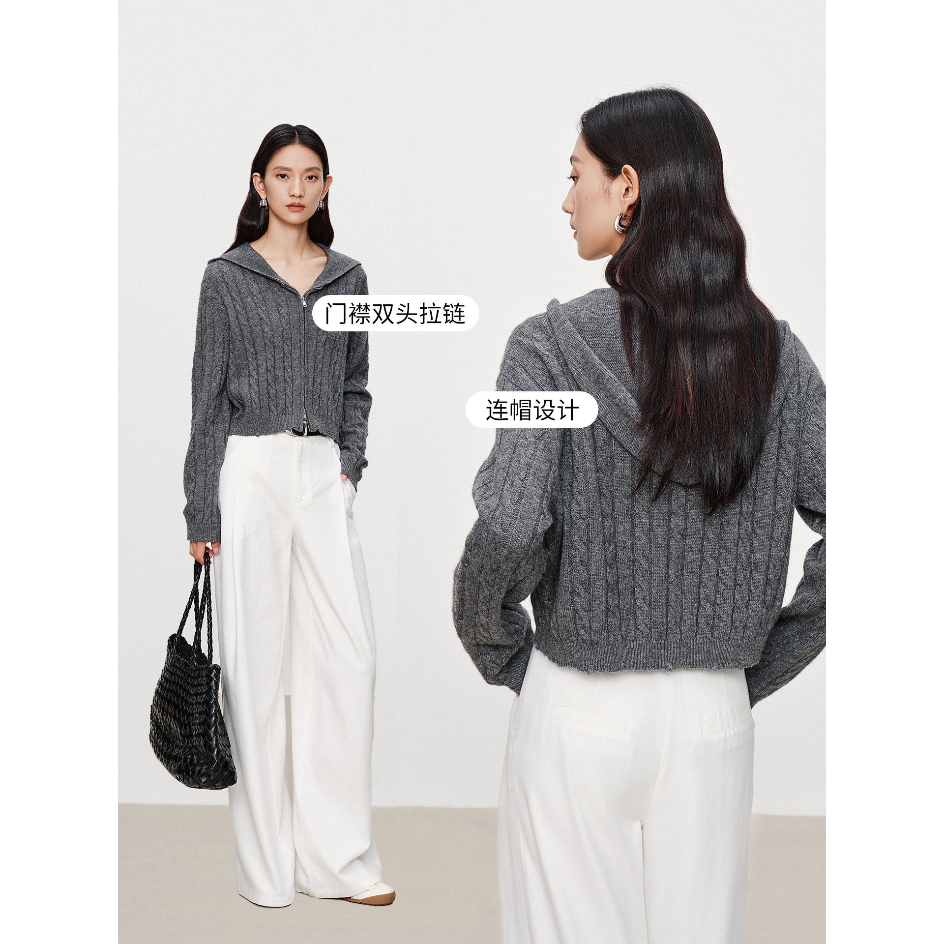 宽松软糯不规则上衣 新款 衣香丽影灰色连帽拉链针织开衫 女2025秋装