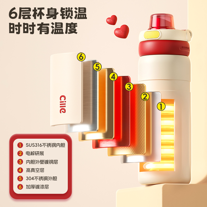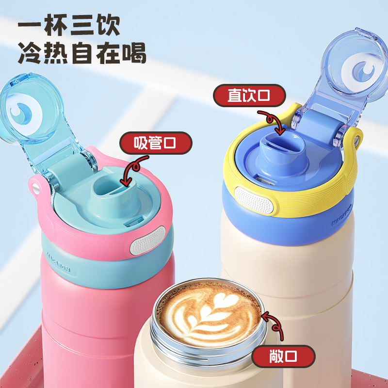 希乐保温杯女生高颜值水杯2025新款 可爱学生儿童杯子大容量吸管杯