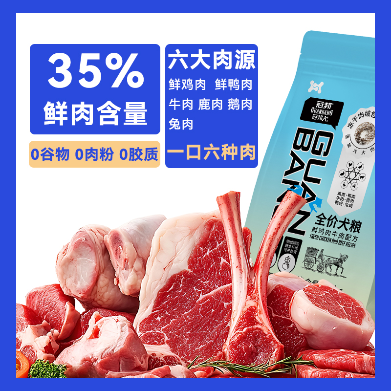 冠邦肉绒犬粮3斤成犬幼犬通用型犬粮鸡肉绒包裹泰迪比熊
