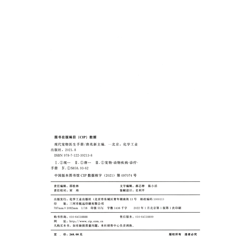 社新华书店正版 现代宠物医生手册唐兆新畜牧 养殖化学工业出版