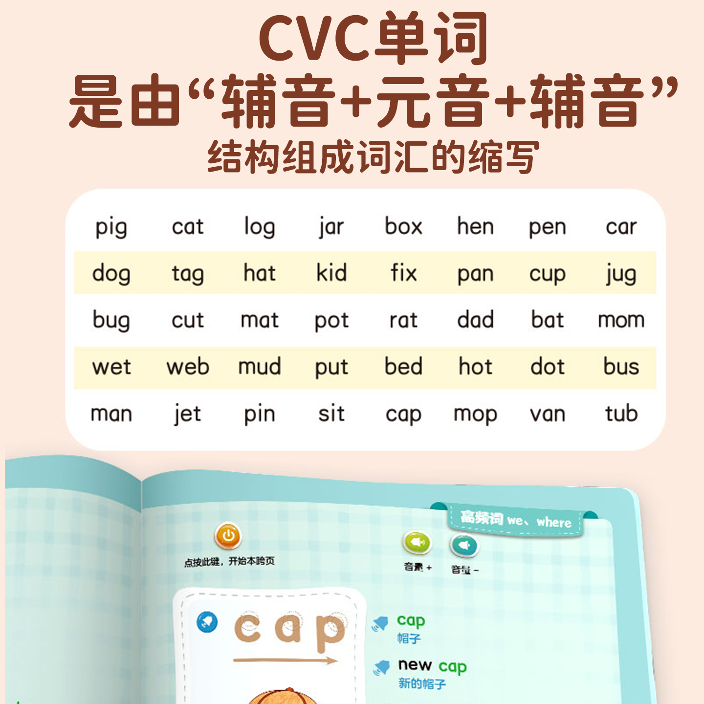 0基础英语启蒙分级阅读点读发声书英文字母音标和自然拼读有声书SSS儿歌语感趣味速记三年级衔接教材小学生入门自学预习学习资料