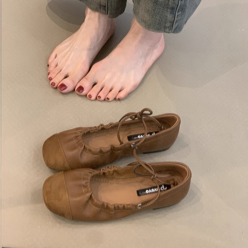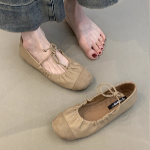 软底玛丽珍鞋 森女文艺褶皱奶奶鞋 女2025新款 复古浅口平底芭蕾单鞋