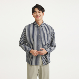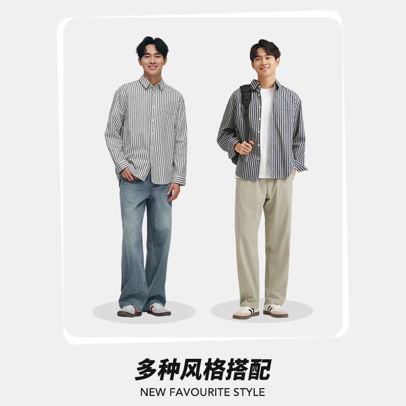 新款 男女生2025春秋季 宽松潮牌休闲学生衬衣外套 衬衫 蓝色条纹长袖