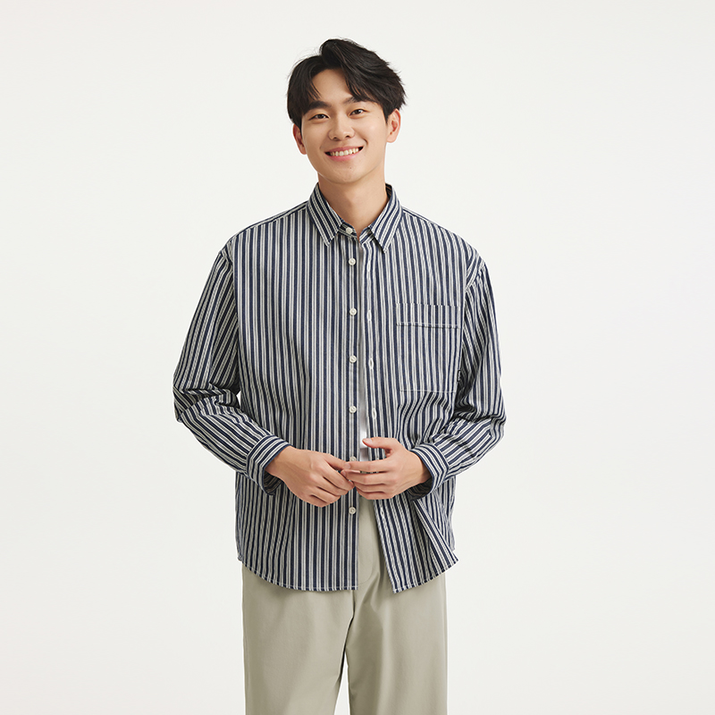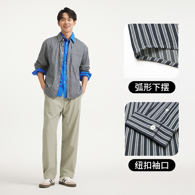男款 衬衫 复古休闲衬衣翻领外套 宽松直筒裤 BODYDREAM 套装 BM长袖