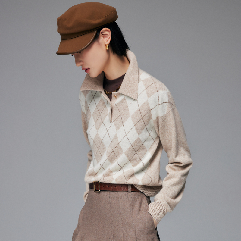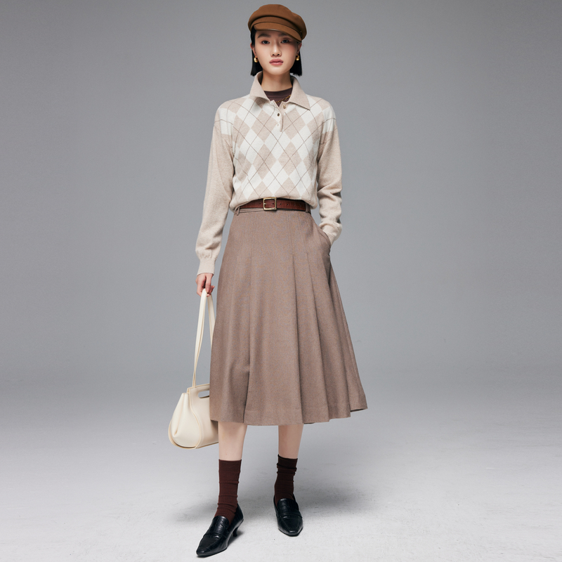 线衣绞花针织衫 暇步士女士羊绒毛衣2025冬新款 何泓姗明星同款