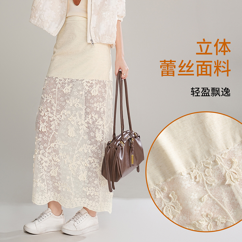 2025春季 白色蕾丝屁帘女系带甜美半身裙百搭围裙罩裙 小众设计韩版