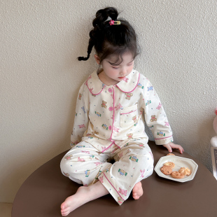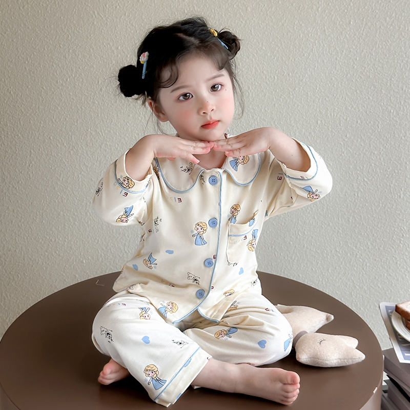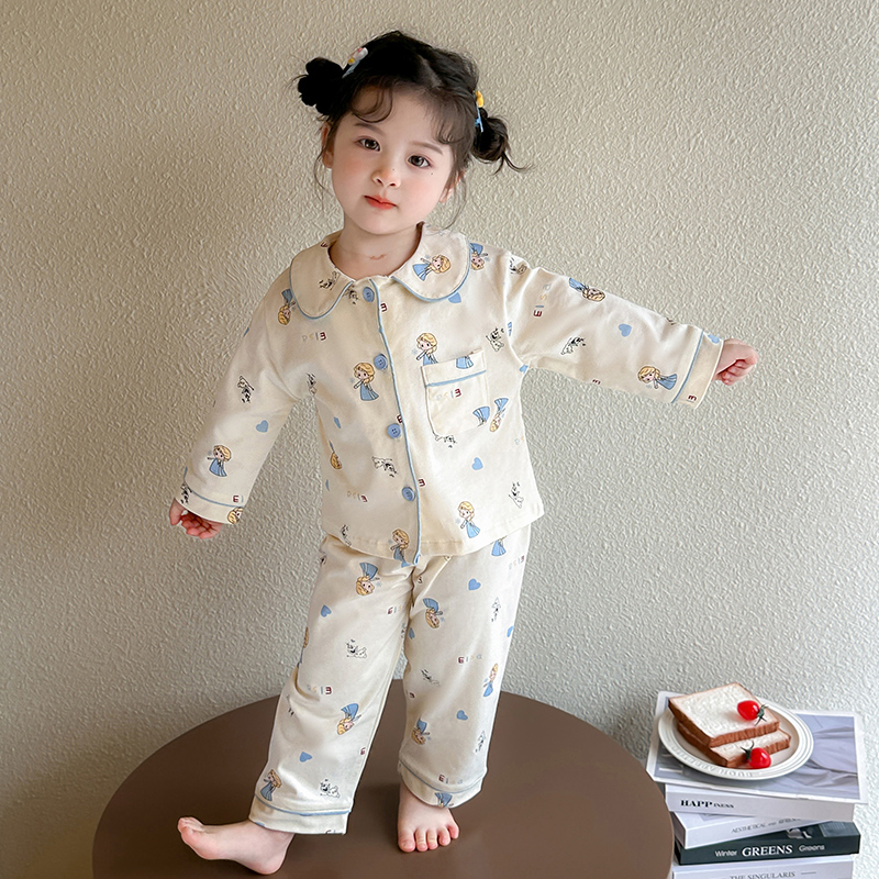开衫 长裤 翻领家居服休闲可爱爱莎公主 小童女宝宝长袖 女童睡衣套装