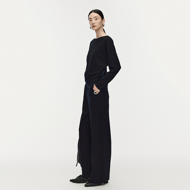 新款 AUM噢姆2025年冬季 羊毛收腰黑色上衣直筒阔腿裤 轻松套装