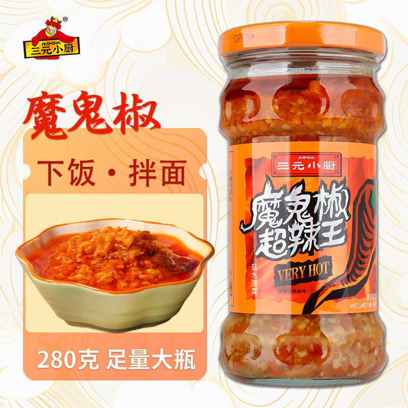 三元 小厨魔鬼辣椒酱超辣王印度辣椒酱商用野山椒鬼椒爆辣
