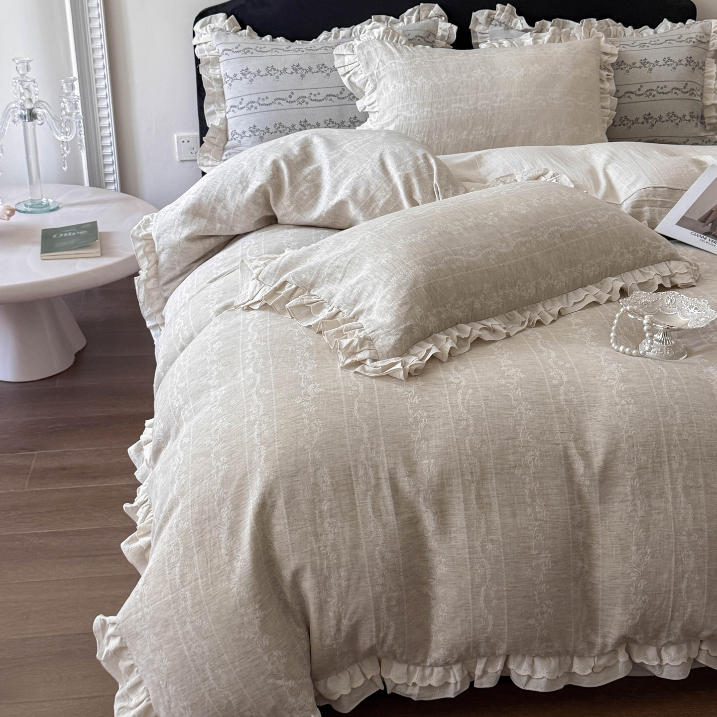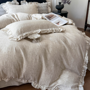 法式 浪漫棉麻花边四件套春夏公主风床单被套亲肤双人床上用品