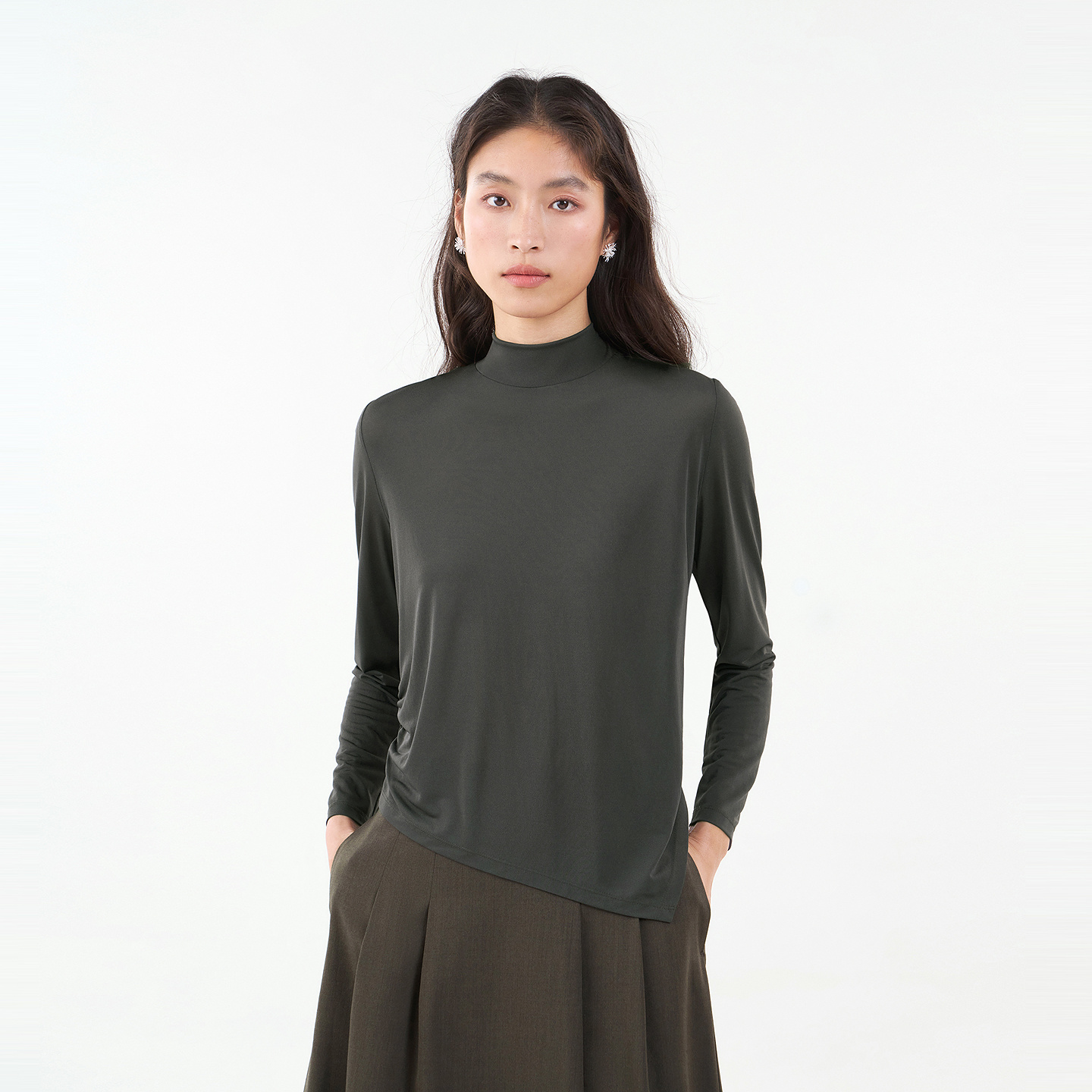 打底T恤女百搭单穿长袖 易菲半高圆领修身 Yifini 上衣秋 专柜同款
