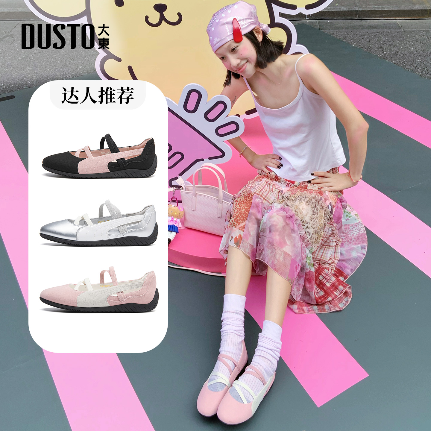 红色玛丽珍鞋 法式 百思图莫奈花园25秋新款 女单鞋 乔欣明星同款