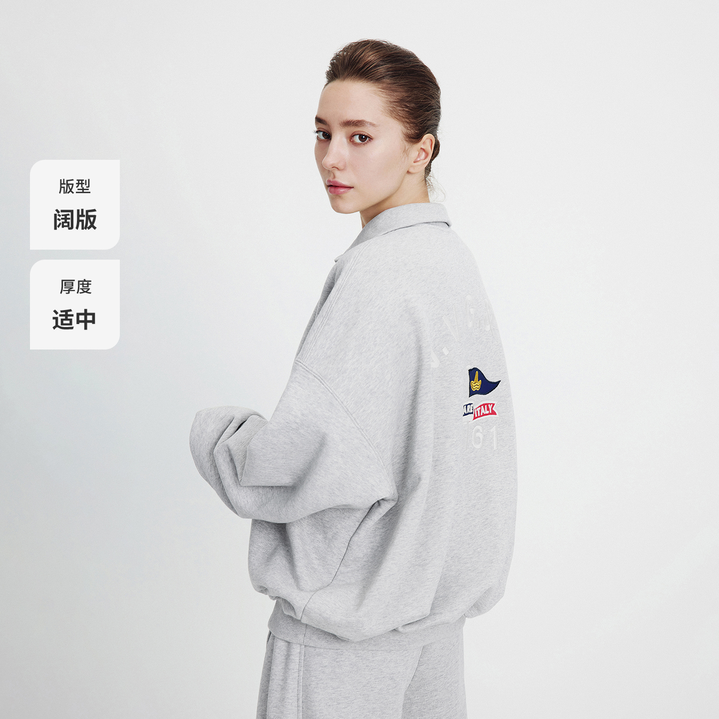 纯棉慵懒风 新款 Navigare意大利小帆船半开领长袖 卫衣女2025秋冬季