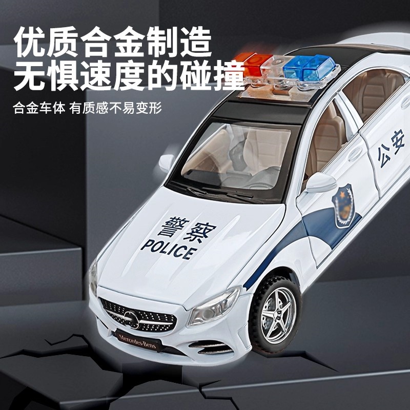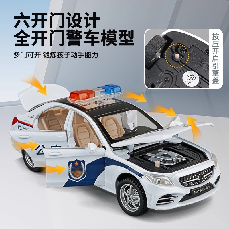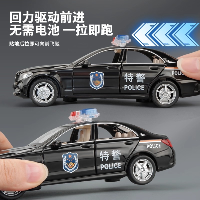 卡威儿童警车玩具合金公安110小汽车模型六开门回力特警察车男孩
