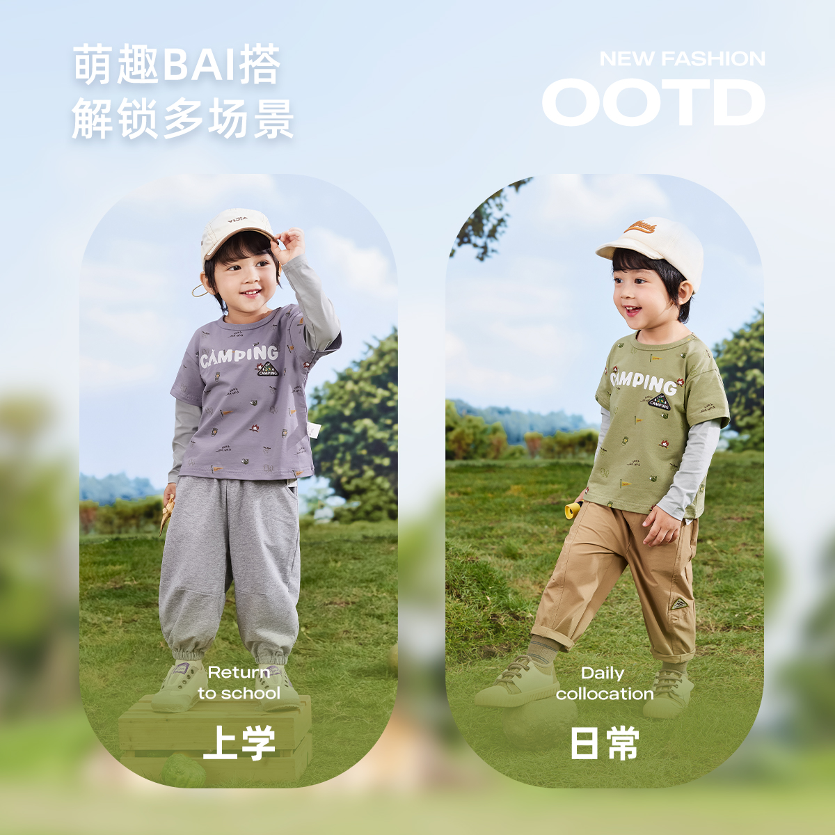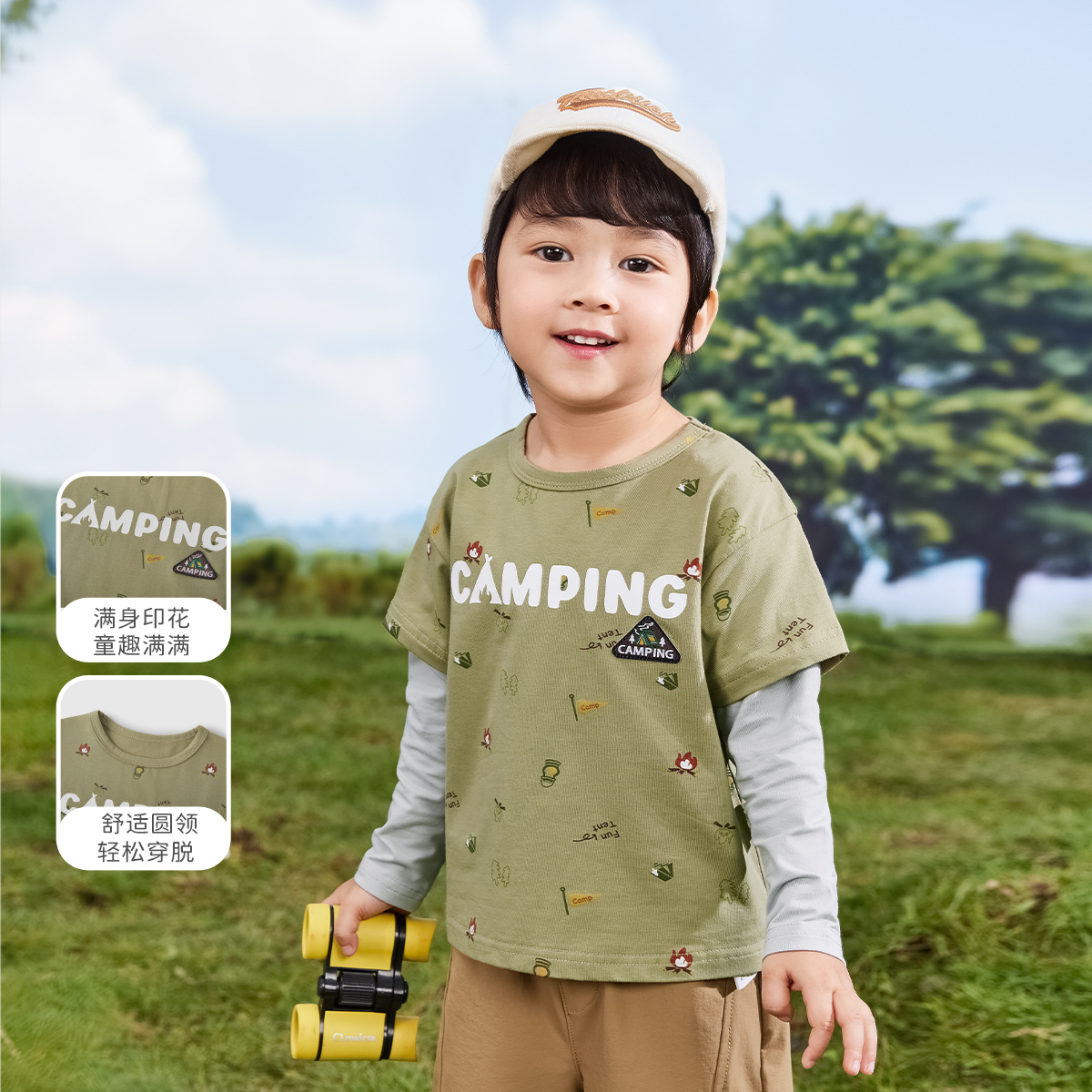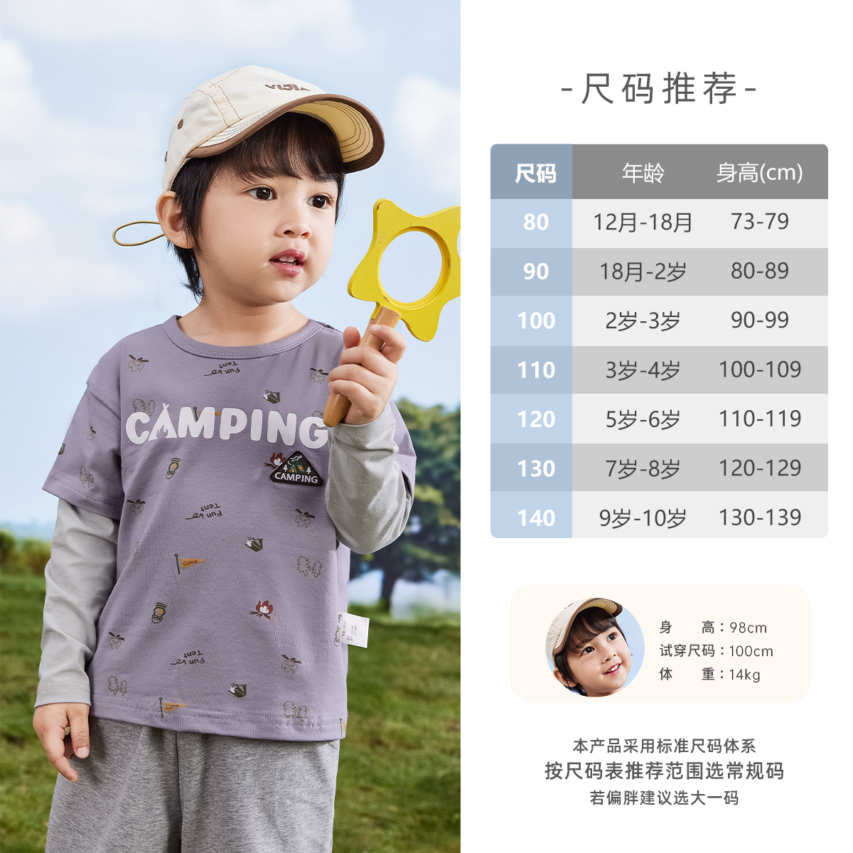 男童时髦假两件秋装 儿童t恤长袖 宝宝圆领上衣8男孩衣服秋 7A抗菌