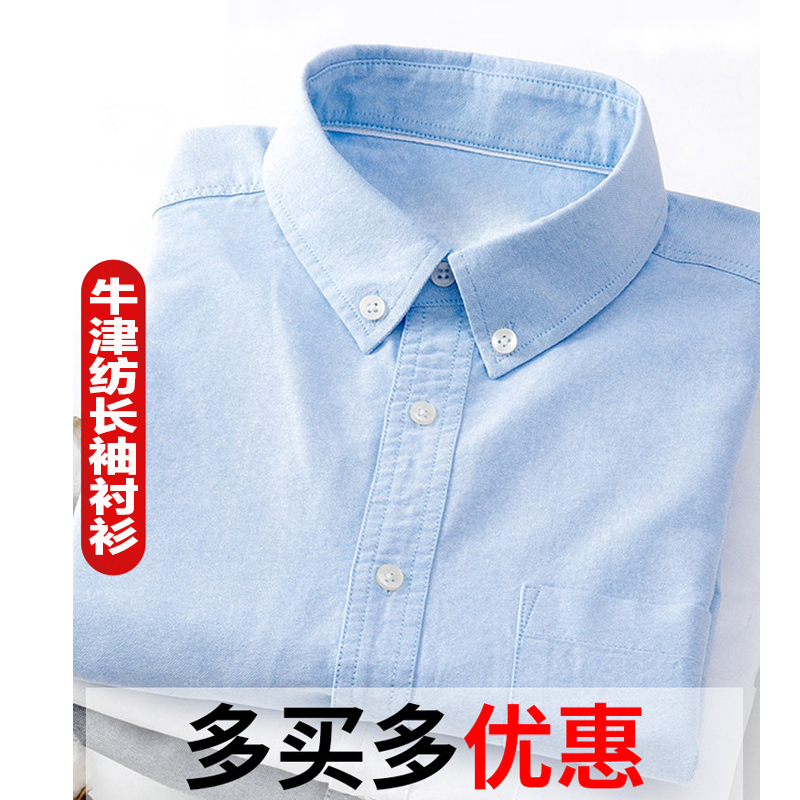 衬衫 牛津纺长袖 中年爸爸纯色衬衣抗皱免烫寸衣外套百搭 男士 秋季