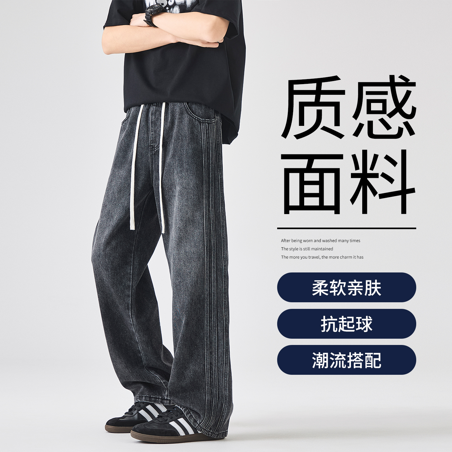 男款 高街休闲宽松直筒潮牌男生阔腿裤 2025新款 美式 子 春秋季 牛仔裤