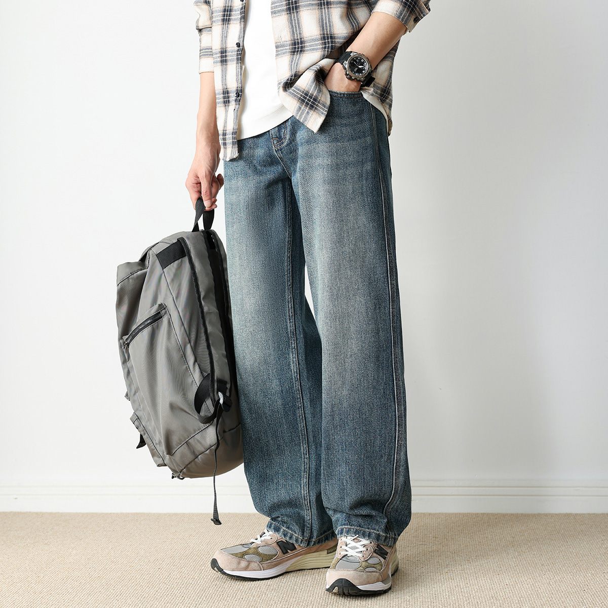 宽松百搭潮弯刀长裤 Dangerouspeople薛之谦dsp高街原色牛仔裤 秋季