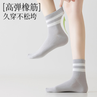亲相见运动袜子女夏薄款 跑步羽毛球长袜 条纹百搭中筒袜配鲨鱼裤