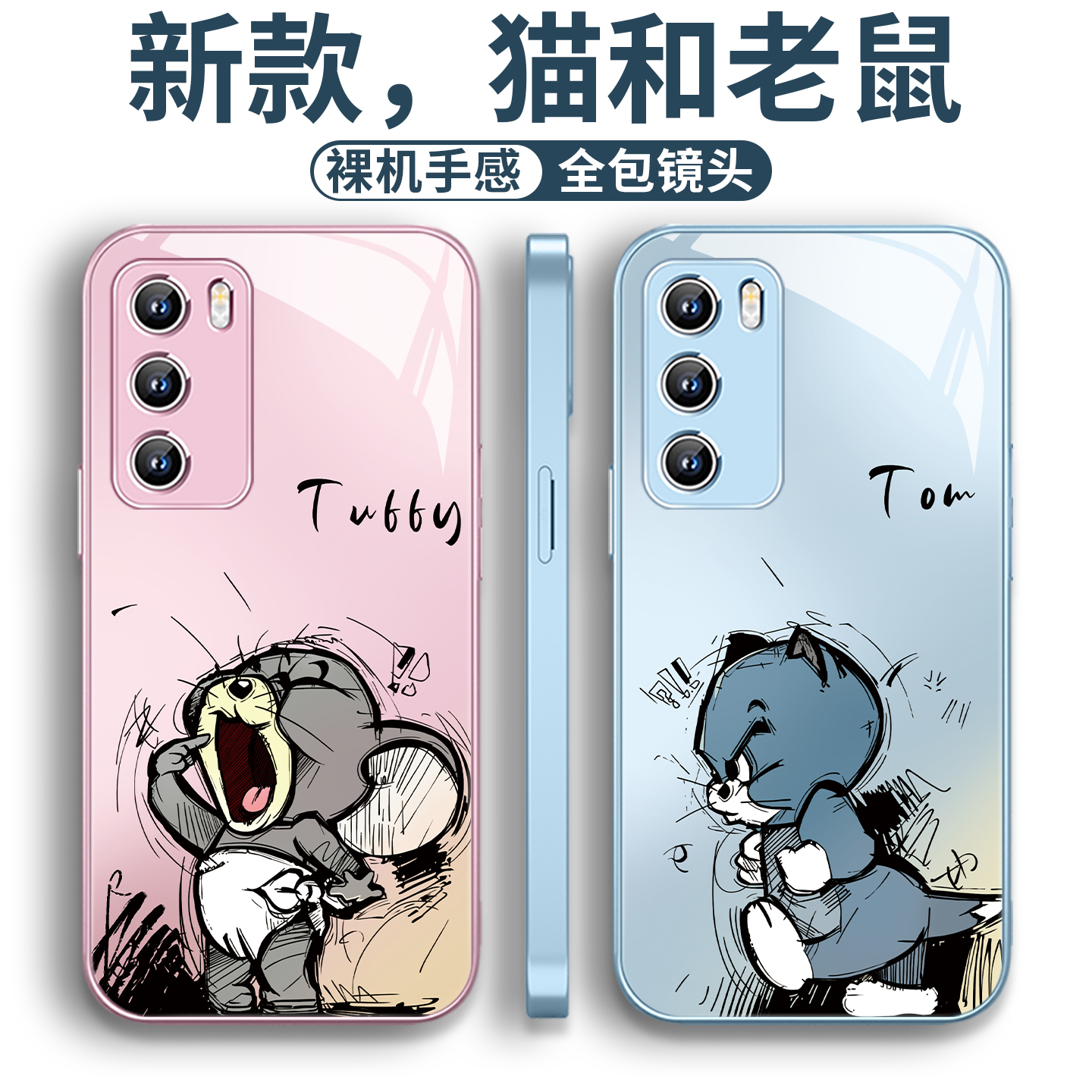 适用华为nova14pro手机壳猫和老鼠mate70情侣pura80简约p60汤姆荣耀400卡通300线条p50女款 30玻璃magic7 p40