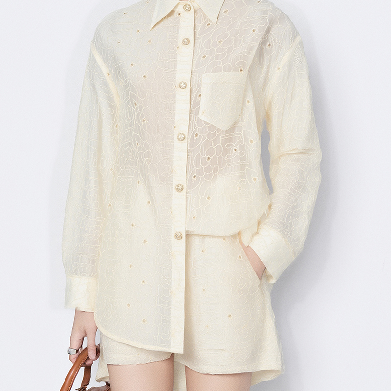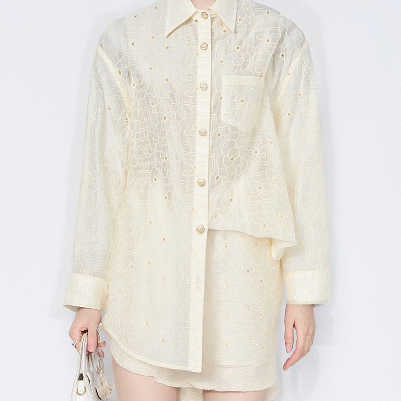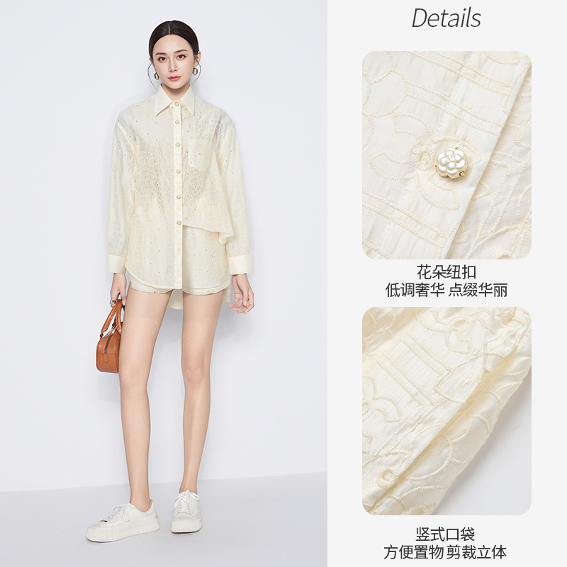 两件套装 kodice秋冬新款 衬衣上衣短裤 刺绣衬衫 老钱风女 莱赛尔法式