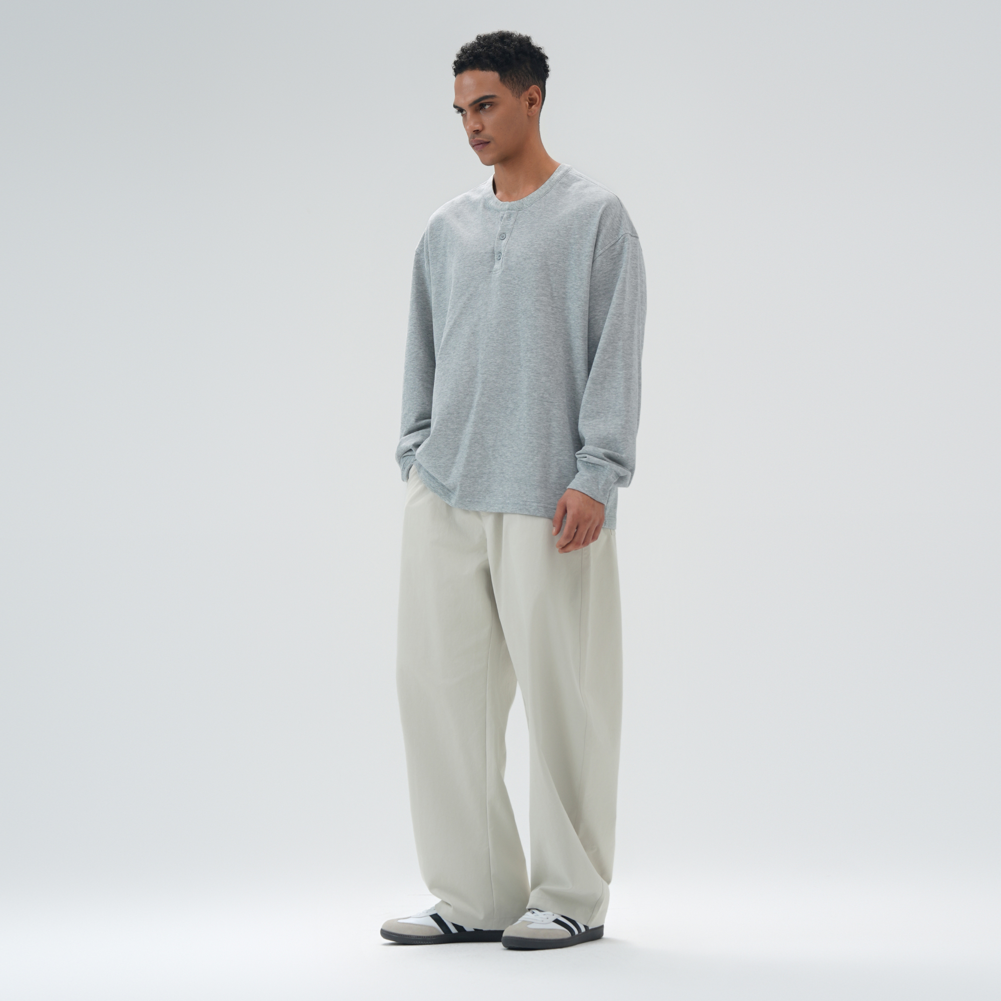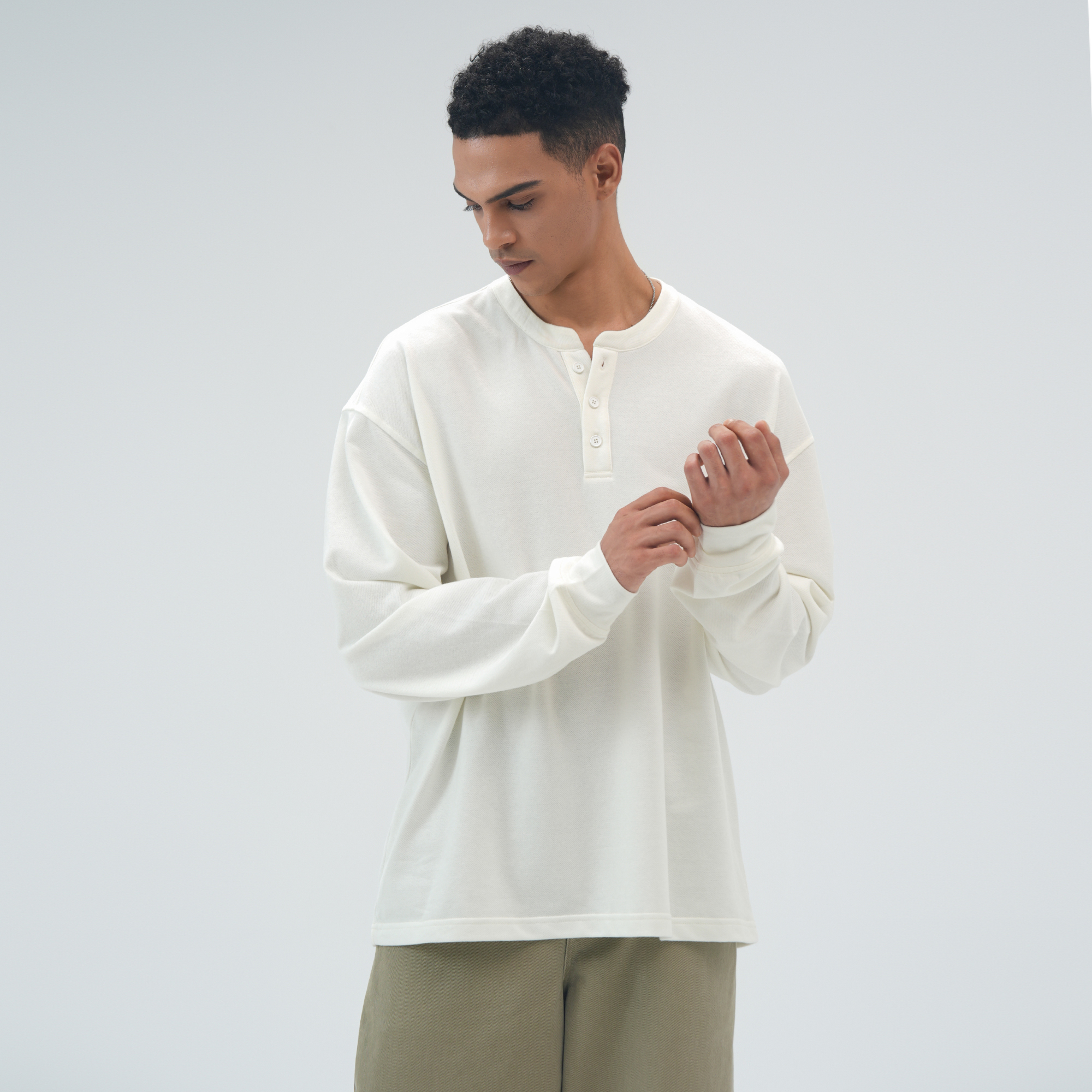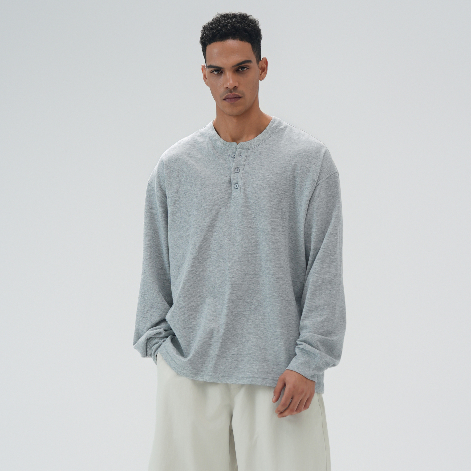 bdpowerup亨利领长袖 t恤男春秋休闲宽松内搭体恤纯色针织打底衫