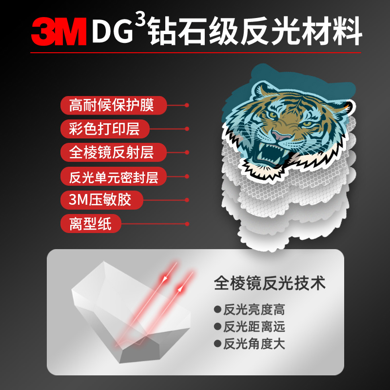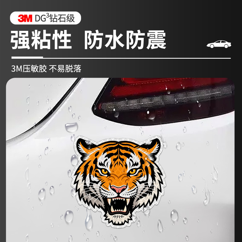 3M个性 饰防水反光车贴 创意凶猛老虎汽车窗贴纸电动车摩托车头盔装