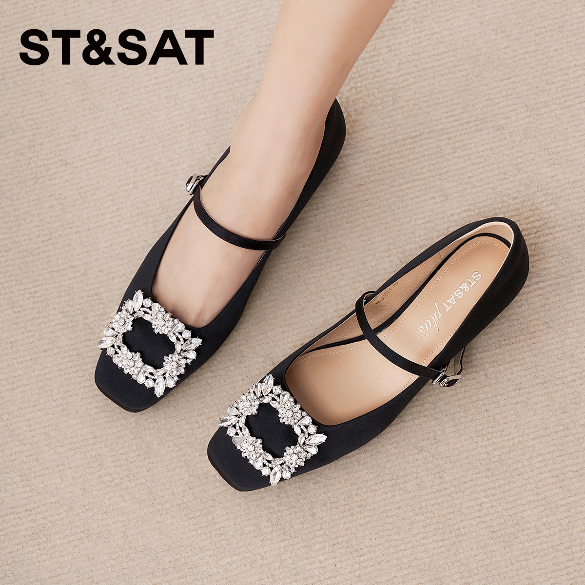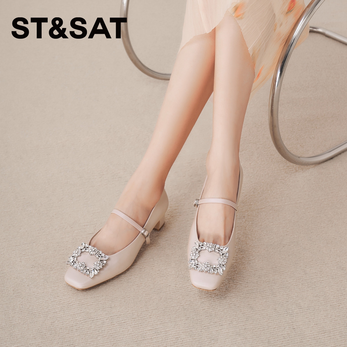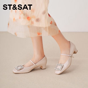 晚风配裙子粗跟浅口单鞋 新款 水钻方扣玛丽珍女2025秋季 星期六法式