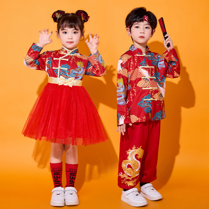 六一儿童喜庆合唱演出服女童蓬蓬裙舞蹈服装 中国风啦啦队小学生