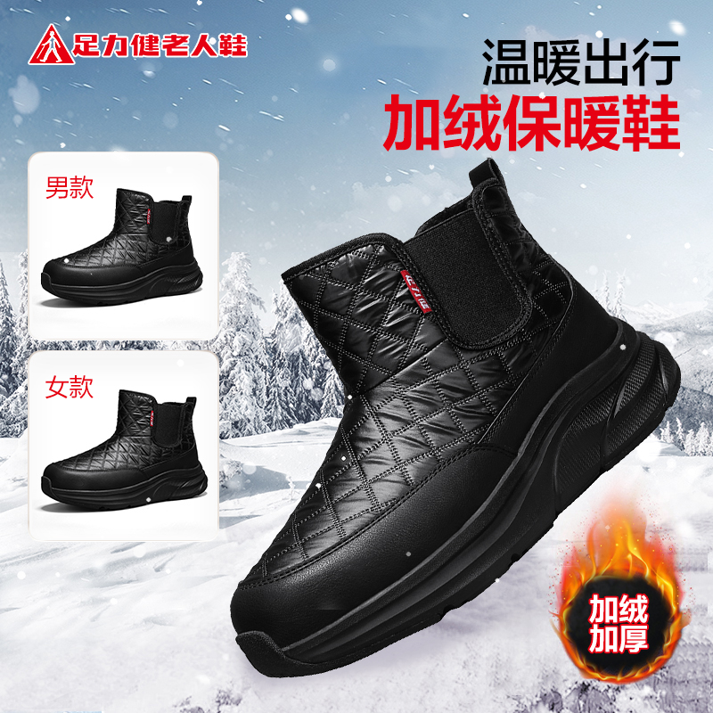 加绒加厚保暖一脚蹬软底防滑妈妈鞋 新款 雪地靴 女2024冬季 棉鞋