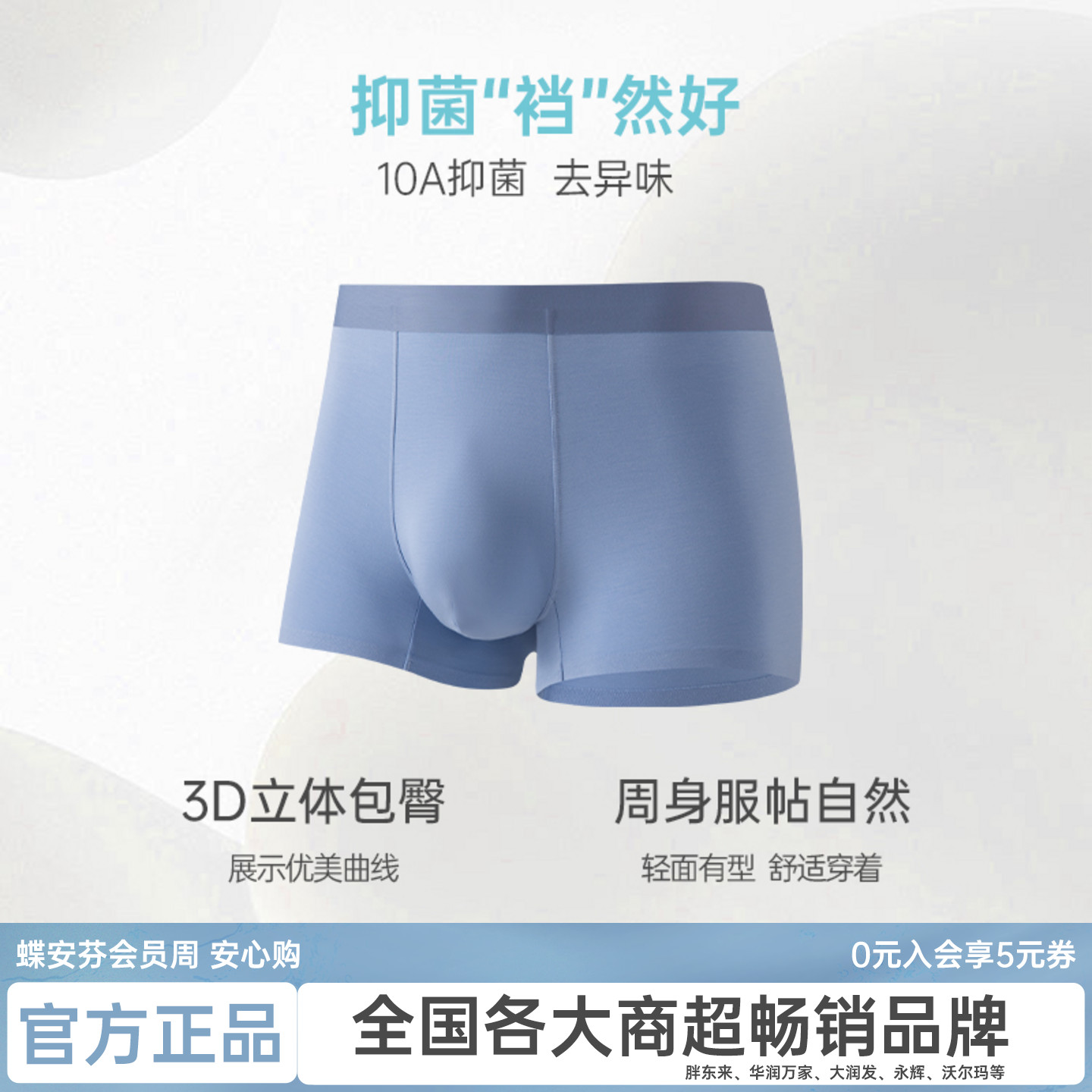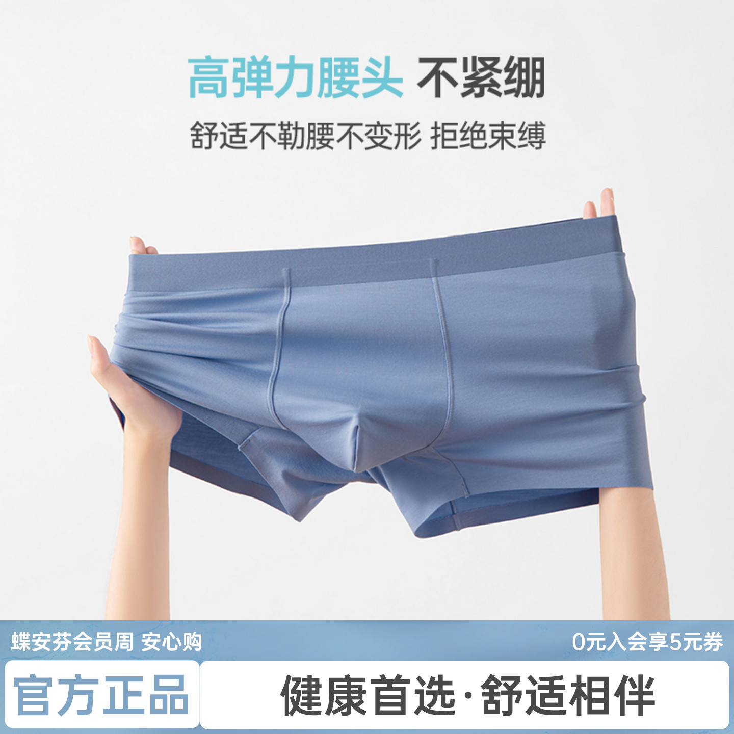 男纯色四角裤 蝶安芬裸感无痕莫代尔内裤 纯棉抗菌裆 达人专属