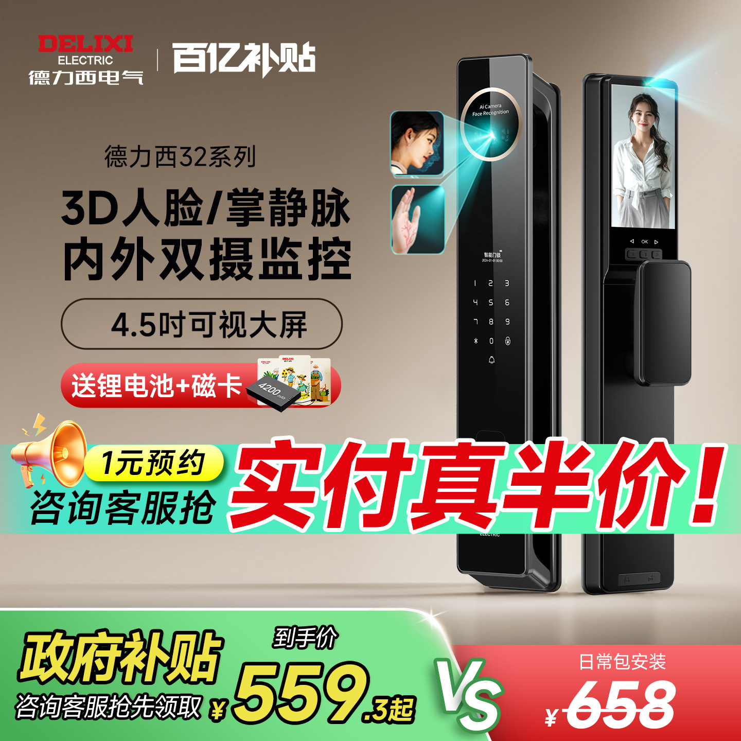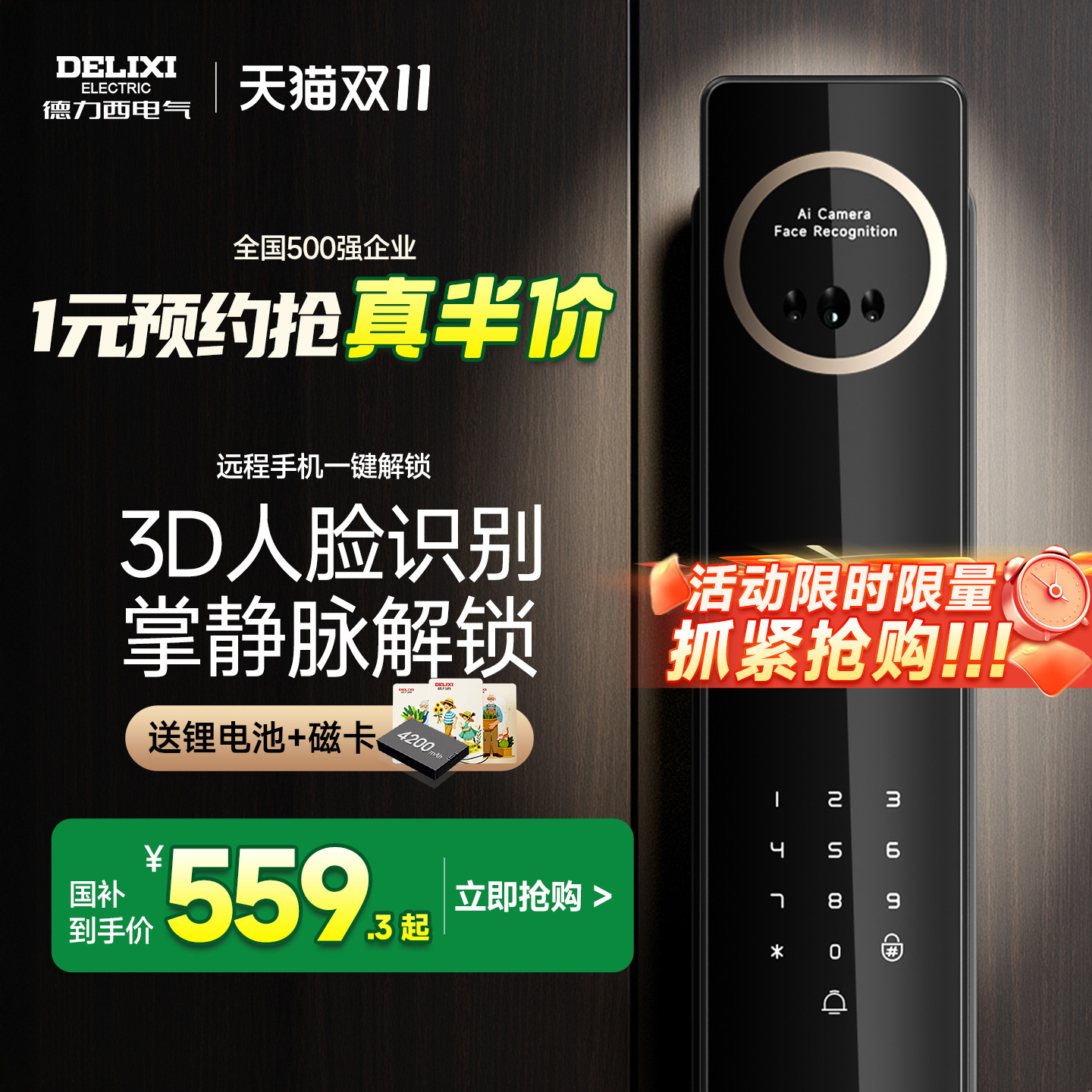 德力西智能锁3D人脸密码 锁家用门锁指纹锁防盗门智能门锁电子锁