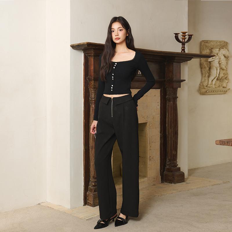 银泰百货 Three 长裤 24冬垂感显瘦翻腰头加绒西装 301355 Quarters