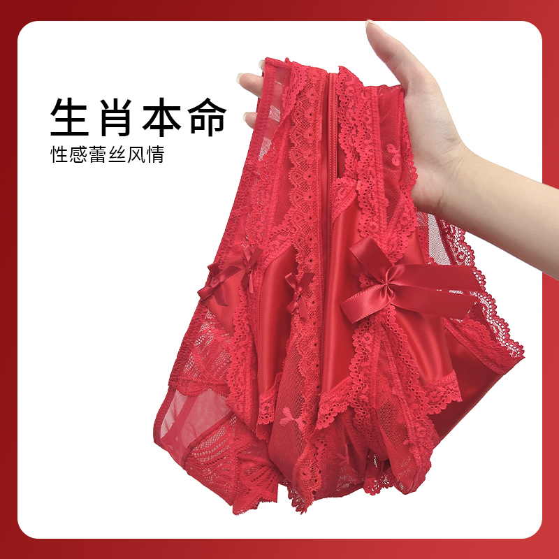 结婚新娘三角裤 红色性感内裤 大红新年 女蛇年蕾丝内裤 本命年红内裤