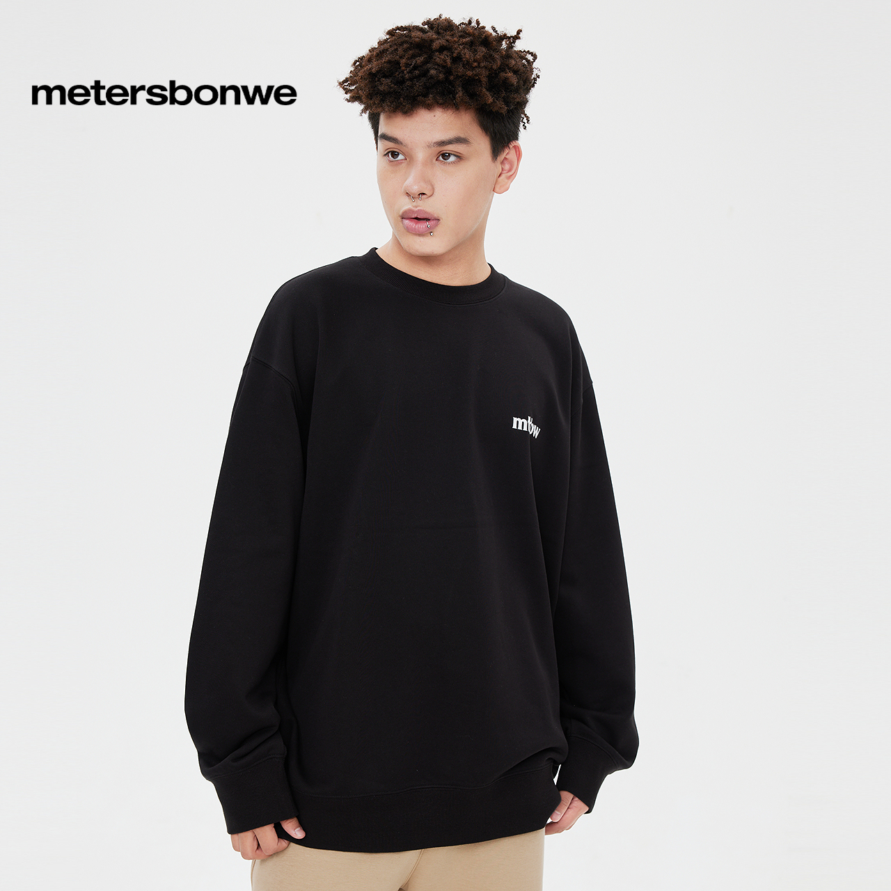 型长袖 简约设计宽松版 上衣 针织套头衫 美特斯邦威卫衣男春秋情侣款