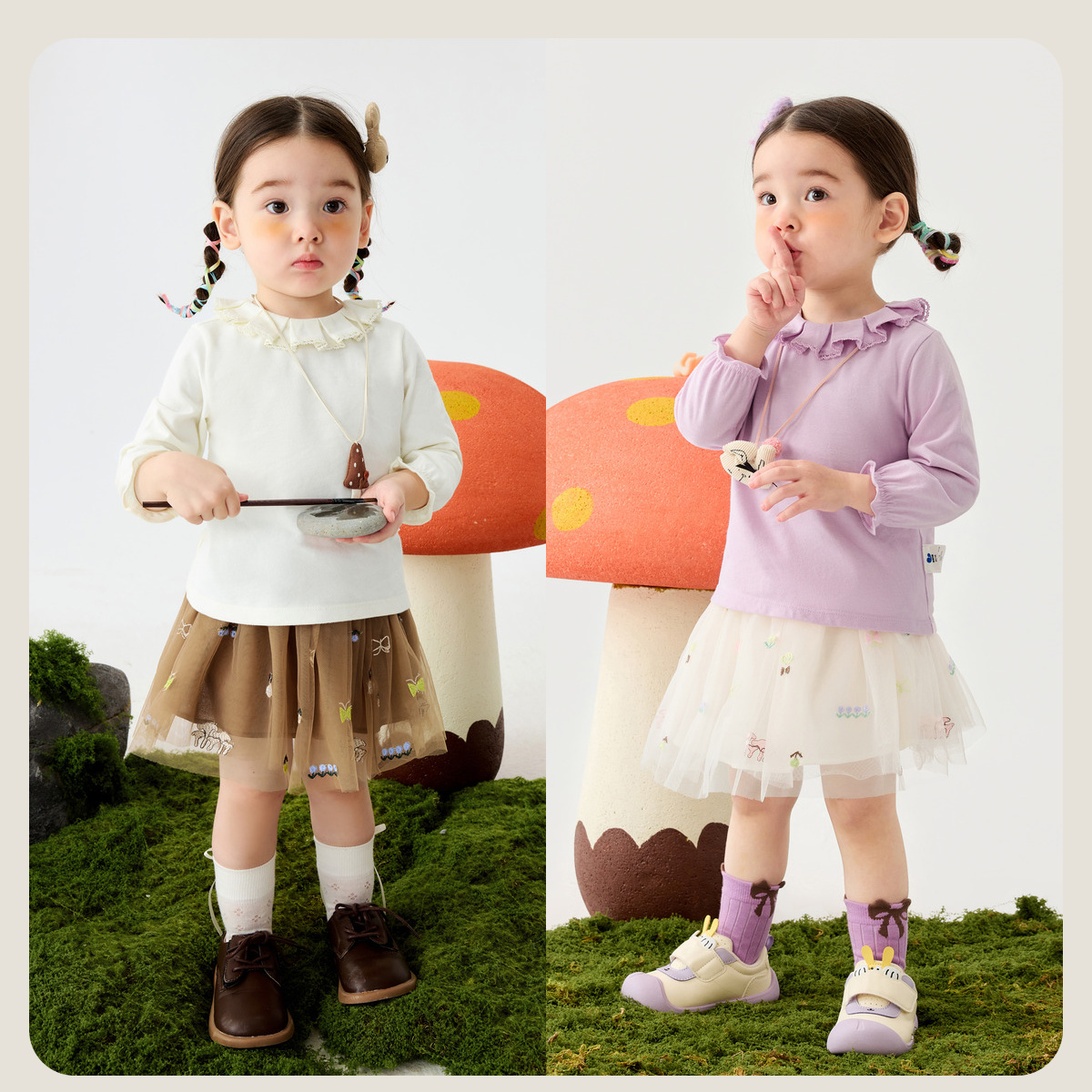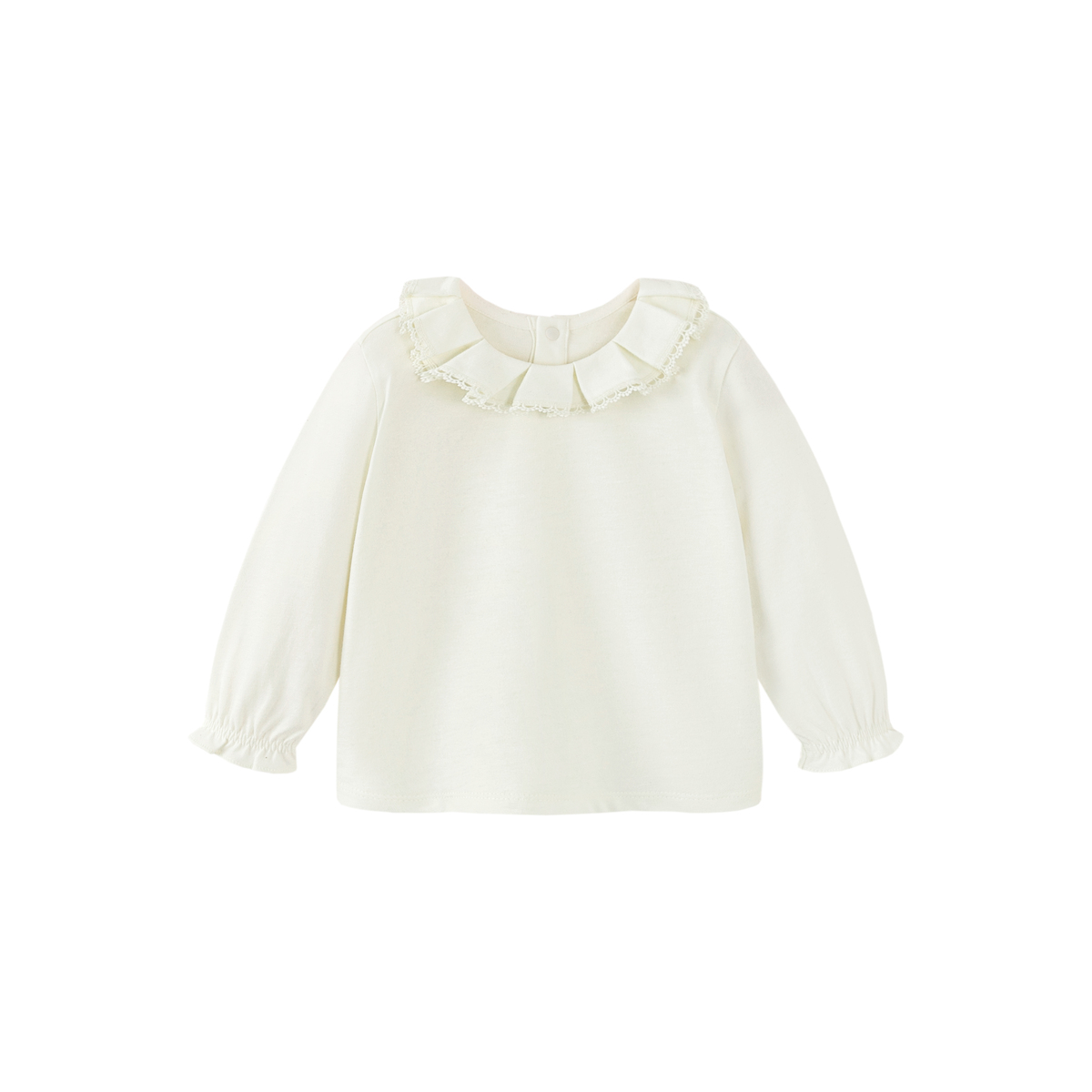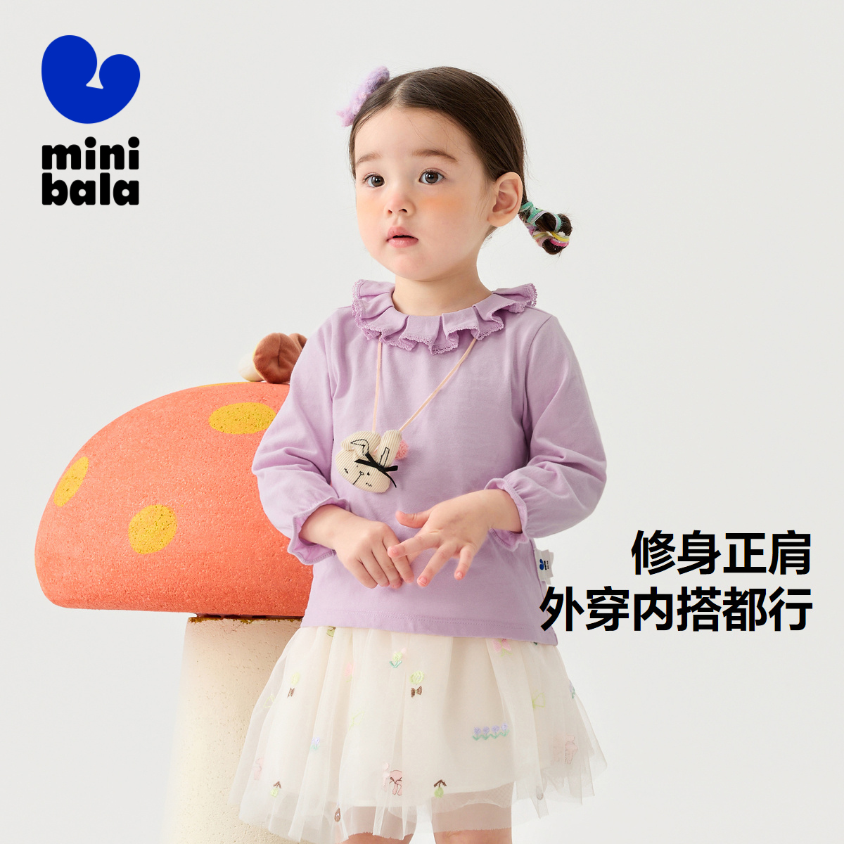 宝宝亲肤上衣花边打底衫 迷你巴拉巴拉女童T恤2025春长袖 糯米T