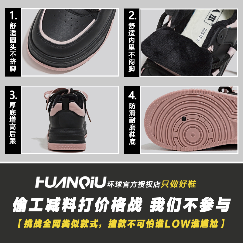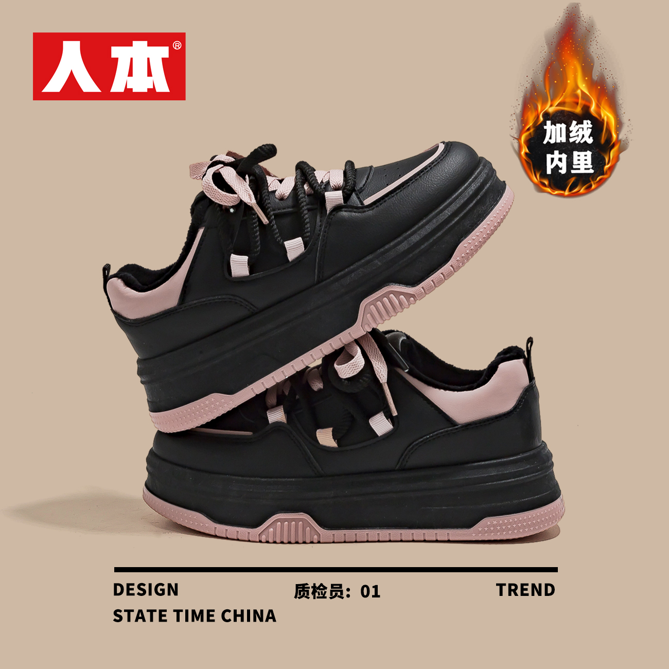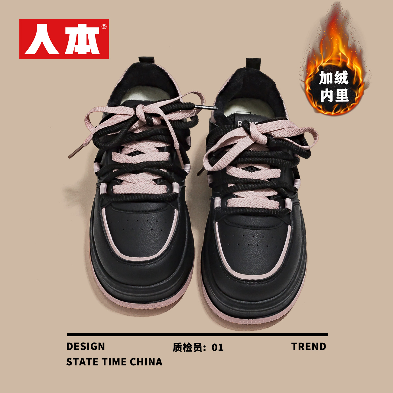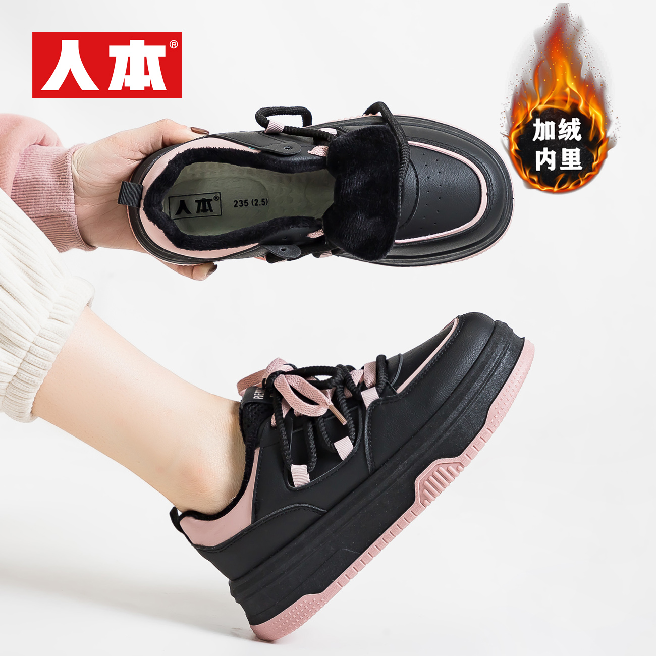 革面保暖厚底时尚 运动鞋 平底鞋 板鞋 子 女款 秋季 女鞋 特步男鞋 休闲鞋