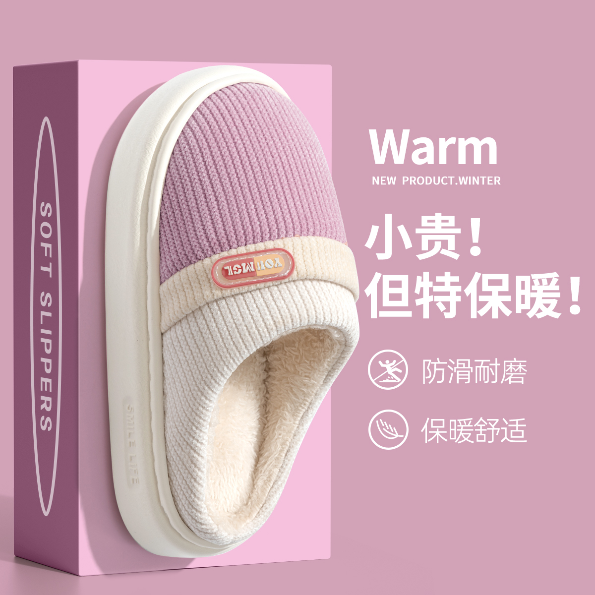 室内家居厚底加绒保暖鞋 2025新款 中老人拖鞋 女款 棉拖鞋 棉鞋 女冬季