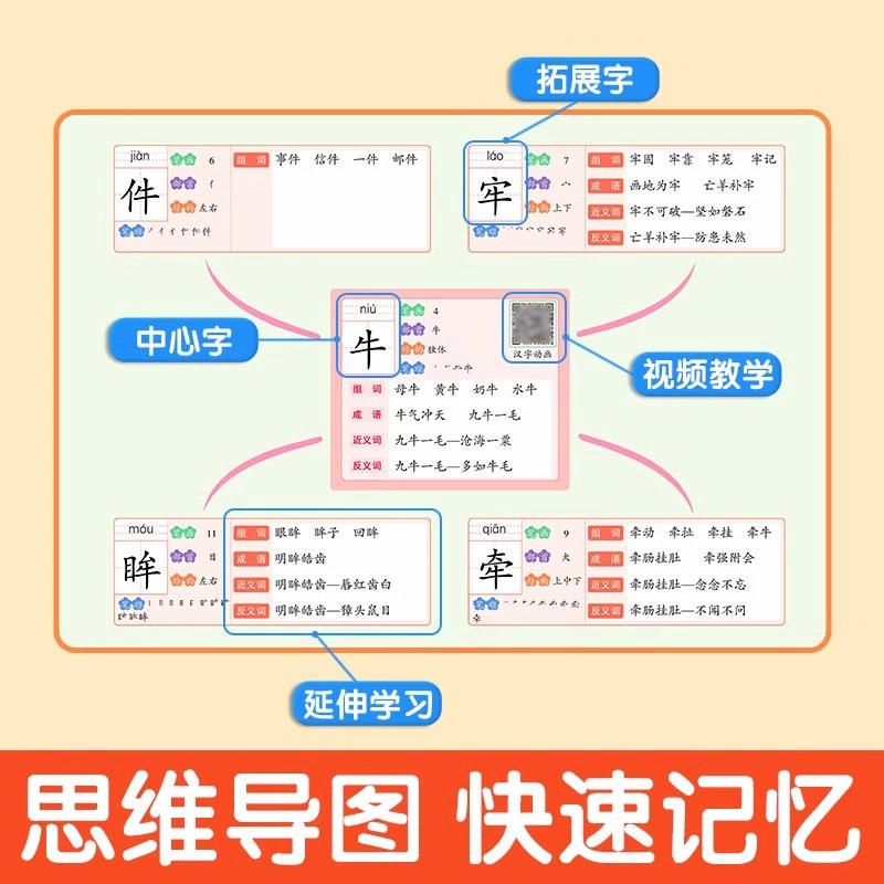 2024随堂帮小学生汉字速记速写视频教学思维导图认字识字书幼儿启蒙认字读音笔画近义反义词成语字典书籍练习本练习册语文生字预习