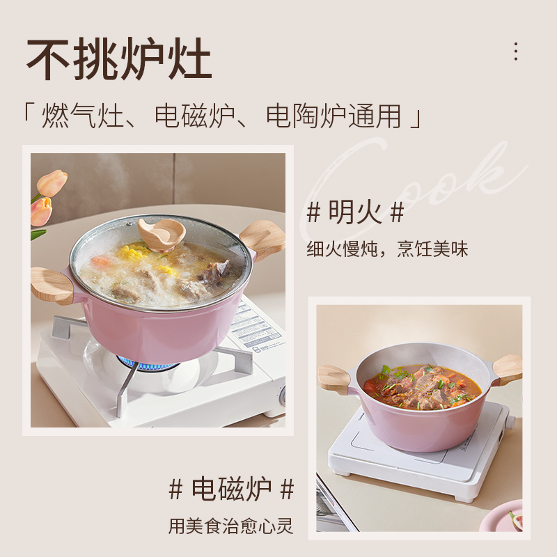 懒米抱抱汤锅麦饭石家用不粘砂锅煲汤煮锅电磁炉燃气灶炖锅专通用
