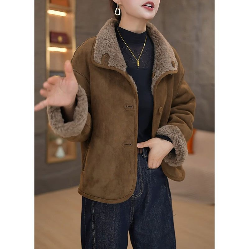 皮毛一体两面穿外搭上衣 气质复古短外套女小个子时尚 2024冬季 新款