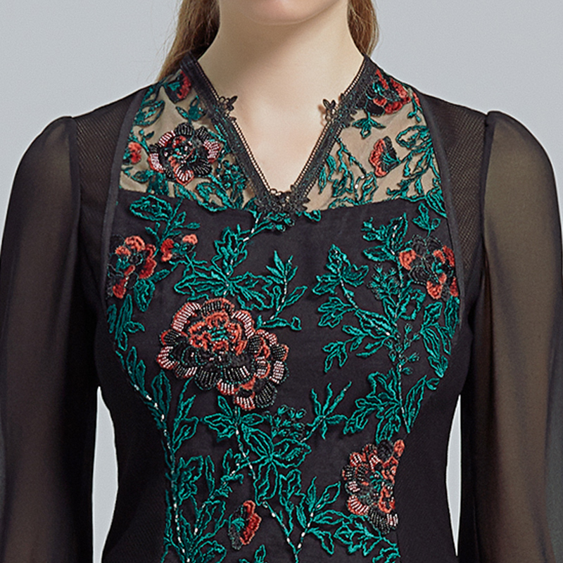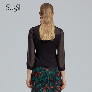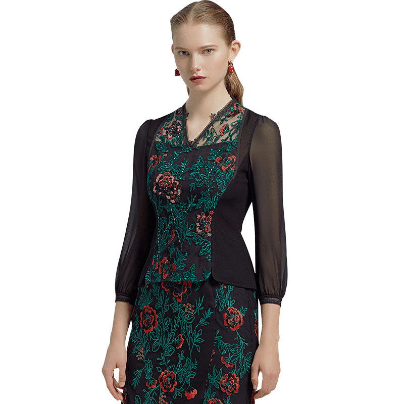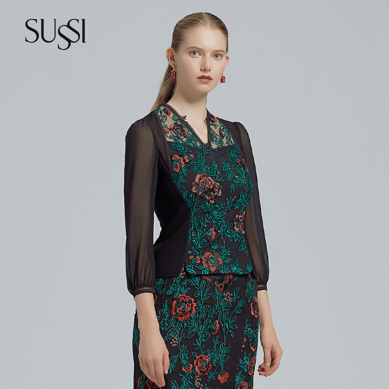 上衣 早春夜宴红绿蕾丝V领气质复古长袖 2201S2730 古色春季 SUSSI