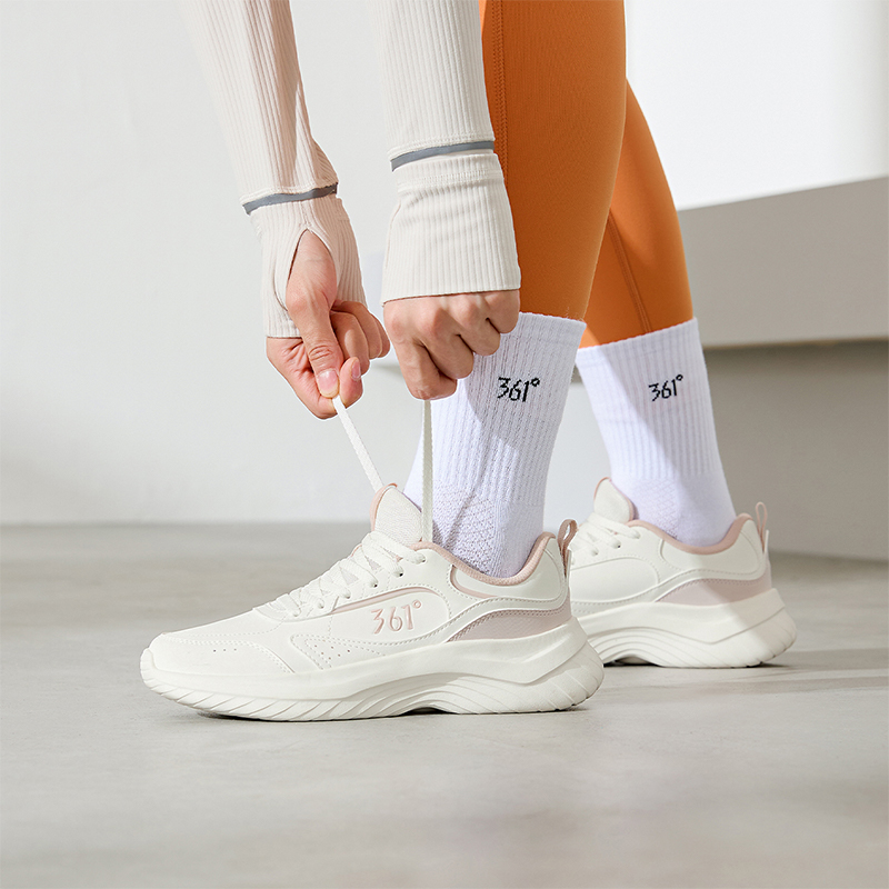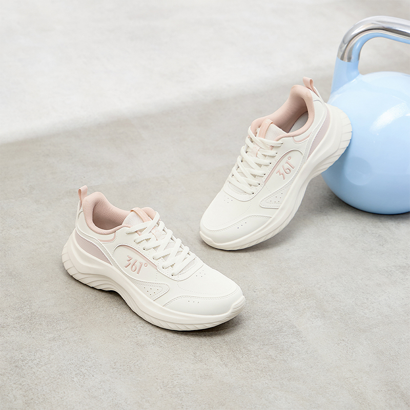 轻便软底跑步鞋 361女鞋 皮面防水休闲小白鞋 女2025春秋新款 运动鞋