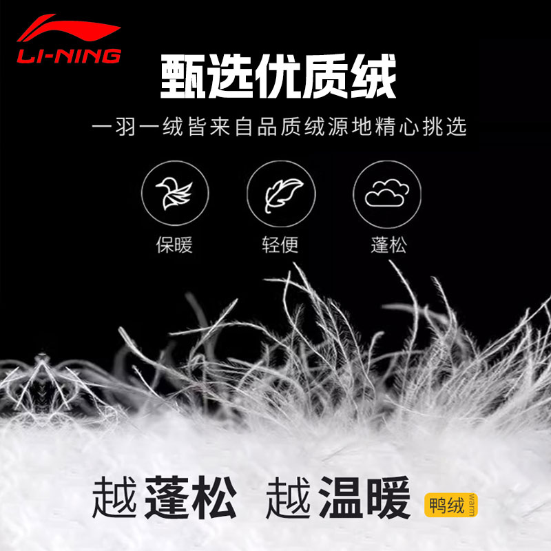 国旗过膝情侣加厚保暖连帽外套正品 新款 男女25冬季 李宁羽绒服长款