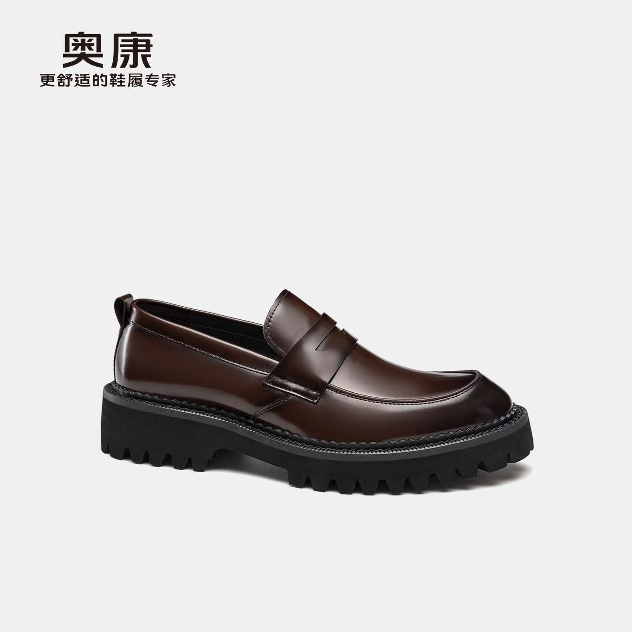 厚底鞋 时尚 休闲乐福鞋 奥康 套脚皮鞋 2025春季 潮鞋 男鞋