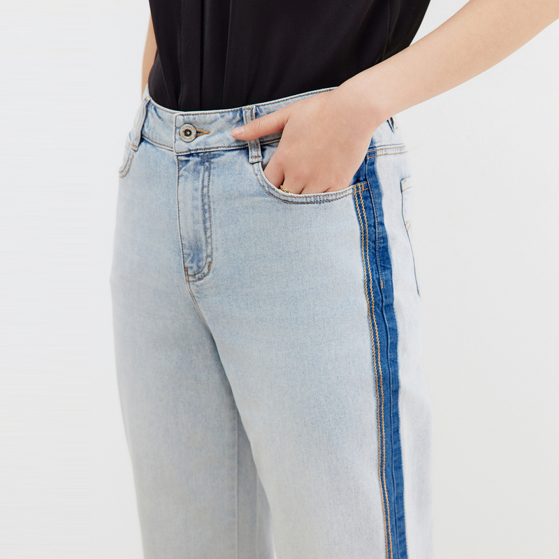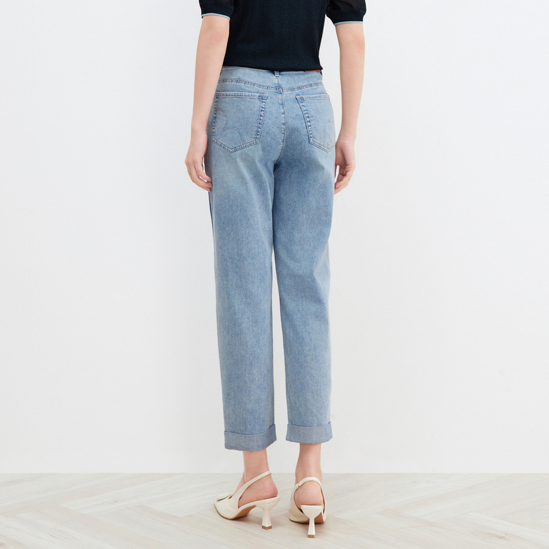 高腰直筒休闲裤 珂莱蒂尔outlets女装 夏卷边设计感九分牛仔裤